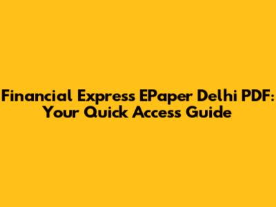Financial Express EPaper Delhi PDF: Your Quick Access Guide