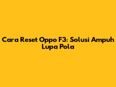 Cara Reset Oppo F3: Solusi Ampuh Lupa Pola