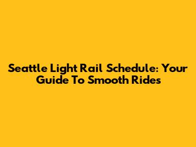 Seattle Light Rail Schedule: Your Guide To Smooth Rides