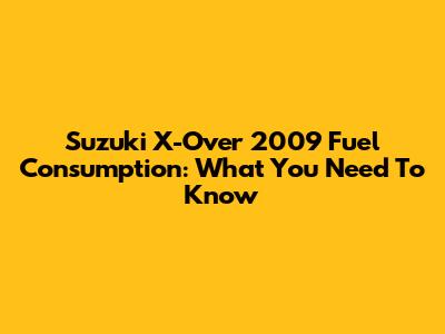 Suzuki X-Over 2009 Fuel Consumption: What You Need To Know