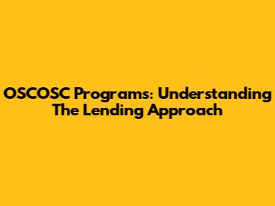 OSCOSC Programs: Understanding The Lending Approach
