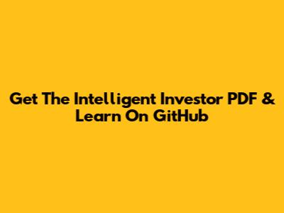Get The Intelligent Investor PDF & Learn On GitHub