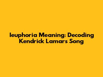 Ieuphoria Meaning: Decoding Kendrick Lamar's Song
