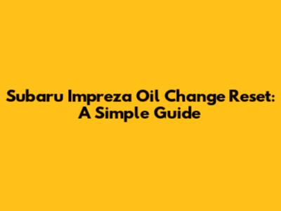 Subaru Impreza Oil Change Reset: A Simple Guide