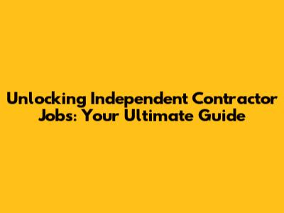 Unlocking Independent Contractor Jobs: Your Ultimate Guide