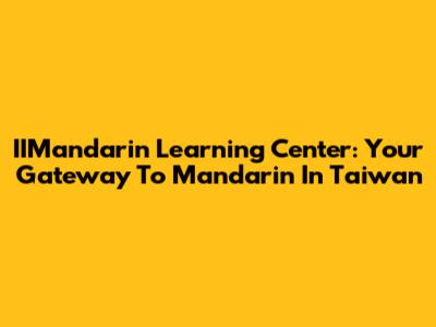 IIMandarin Learning Center: Your Gateway To Mandarin In Taiwan