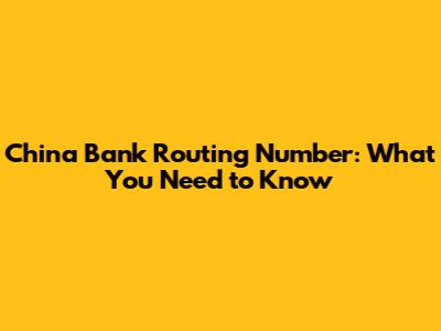 In essence, the China Bank routing number is your key to unlocking smooth and reliable financial transactions. Make sure you have it handy whenever you’re dealing with wire transfers, direct deposits, or electronic payments.