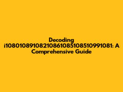 To really figure out what i10801089108210861085108510991081 is, we need more context. Where did you find it? What were you doing when you encountered it? The answers to these questions will give us valuable clues.