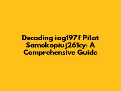 Navigating the cryptic world of codes and identifiers can often feel like deciphering an ancient language. Today, we're diving deep into the enigma of "iag197f pilot samokopiuj261cy." This string of characters might seem like random gibberish at first glance, but there's likely a story behind it. Understanding its potential meaning requires a bit of detective work, considering various contexts in which such identifiers might appear. Whether it's related to aviation, technology, or some other specialized field, we'll explore the possibilities and try to unravel the mystery. So, buckle up, guys, and let's embark on this decoding adventure together!