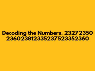 When faced with a mysterious string of numbers like "23272350 236023812335237523352360," the first step is to consider its format. Is it a single continuous number, or are there discernible segments or patterns? The presence of spaces, hyphens, or other delimiters can provide valuable clues about the structure and meaning of the sequence. Analyzing the individual digits and their arrangement is also crucial. Are there any repeating patterns, ascending or descending sequences, or other noteworthy characteristics? These patterns could indicate a specific encoding scheme or algorithm. Moreover, consider the length of the sequence. Is it a relatively short number, or does it consist of many digits? The length of the sequence can influence the number of possible interpretations and the complexity of the decoding process. For instance, a shorter sequence might represent a simple code or identifier, while a longer sequence could be a more complex piece of data, such as a cryptographic key or a compressed data stream. If we suspect the sequence is an encoded message, we can explore various decoding techniques. Cryptography involves converting information into a secret code to protect it from unauthorized access. Common encryption methods include substitution ciphers, transposition ciphers, and more complex algorithms like AES and RSA. By applying different decoding methods, we might be able to reveal the original message hidden within the number sequence. Another approach is to analyze the frequency of each digit in the sequence. Some digits might appear more frequently than others, which could indicate a specific pattern or statistical bias. Frequency analysis is a common technique used in cryptography to break codes and decipher secret messages. If we have access to a large dataset of similar number sequences, we can perform statistical analysis to identify common patterns and correlations. This can help us understand the underlying structure and meaning of the sequence. For example, if we observe that certain digits consistently appear together, it could indicate a specific relationship or dependency between those digits. Ultimately, decoding number sequences is a combination of art and science. It requires a blend of analytical skills, creative thinking, and domain expertise. By systematically exploring different possibilities and applying appropriate techniques, we can often unlock the secrets hidden within these numerical mysteries. Remember, context is king!