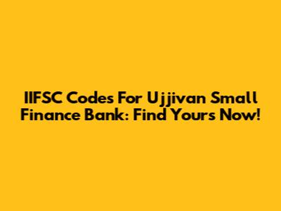 IIFSC Codes For Ujjivan Small Finance Bank: Find Yours Now!