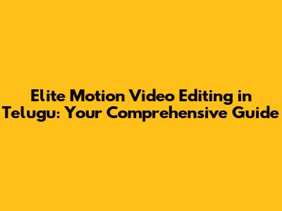 Hey everyone, are you ready to dive into the awesome world of elite motion video editing in Telugu? Whether you're a total newbie or have dabbled a bit, this guide is your go-to resource. We'll explore everything from the basics to some cool advanced techniques, all tailored for the Telugu-speaking audience. Get ready to transform your videos into stunning visual stories!