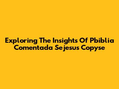 Exploring The Insights Of 'Pbiblia Comentada Sejesus Copyse'