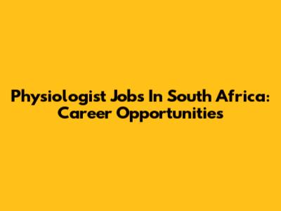 Physiologist Jobs In South Africa: Career Opportunities