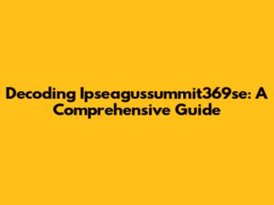 Decoding Ipseagussummit369se: A Comprehensive Guide