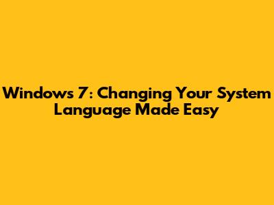 Windows 7: Changing Your System Language Made Easy
