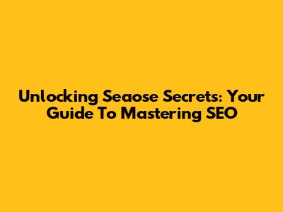 Unlocking Seaose Secrets: Your Guide To Mastering SEO