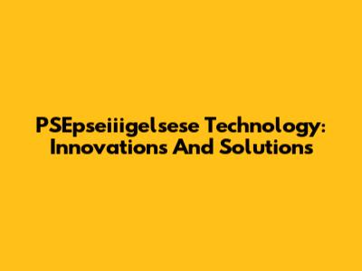 PSEpseiiigelsese Technology: Innovations And Solutions