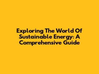 Exploring The World Of Sustainable Energy: A Comprehensive Guide