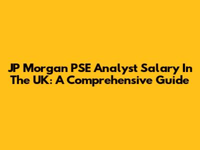 JP Morgan PSE Analyst Salary In The UK: A Comprehensive Guide