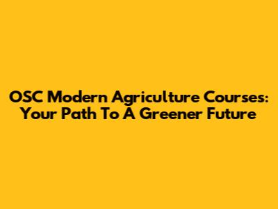 OSC Modern Agriculture Courses: Your Path To A Greener Future