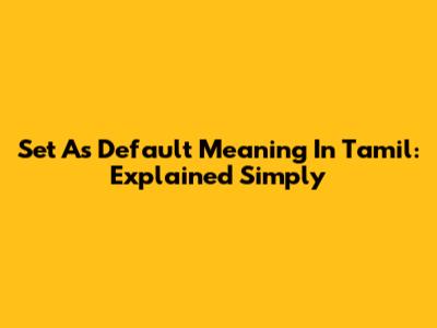 Set As Default Meaning In Tamil: Explained Simply