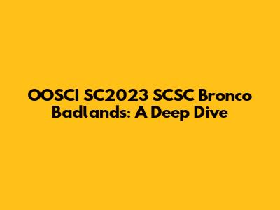 OOSCI SC2023 SCSC Bronco Badlands: A Deep Dive