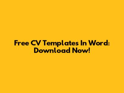 Free CV Templates In Word: Download Now!
