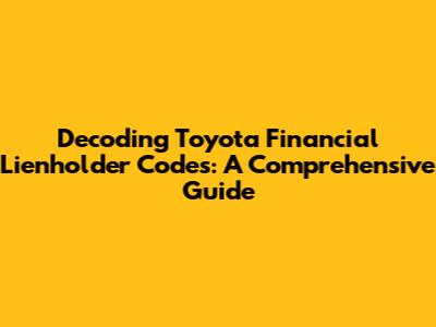 Decoding Toyota Financial Lienholder Codes: A Comprehensive Guide