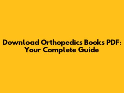 Download Orthopedics Books PDF: Your Complete Guide
