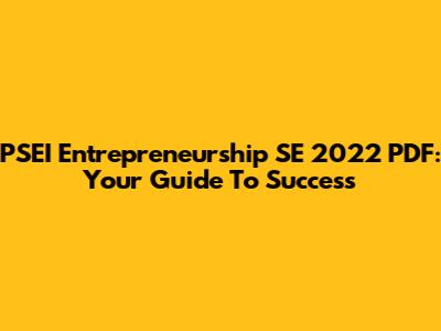 PSEI Entrepreneurship SE 2022 PDF: Your Guide To Success