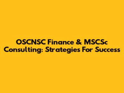 OSCNSC Finance & MSCSc Consulting: Strategies For Success