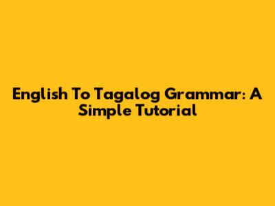 English To Tagalog Grammar: A Simple Tutorial