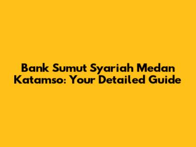 Bank Sumut Syariah Medan Katamso: Your Detailed Guide