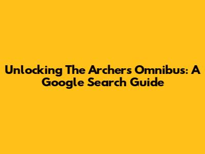 Unlocking The Archers Omnibus: A Google Search Guide