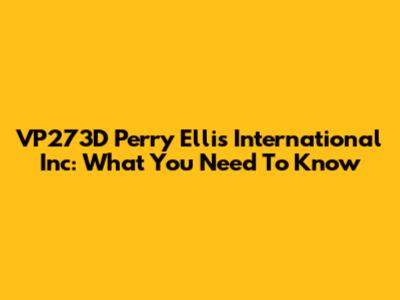 VP273D Perry Ellis International Inc: What You Need To Know