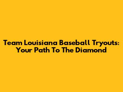 Team Louisiana Baseball Tryouts: Your Path To The Diamond