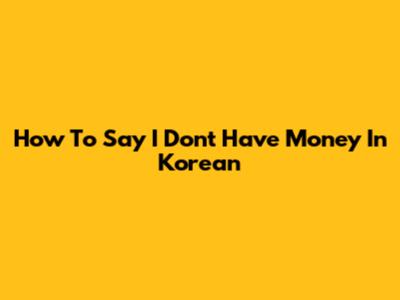 How To Say 'I Don't Have Money' In Korean