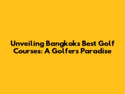 Unveiling Bangkok's Best Golf Courses: A Golfer's Paradise