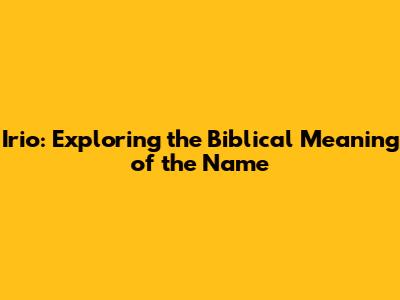 While the name Irio may not have a direct, well-established meaning in biblical Hebrew, exploring its potential roots and connections to related names can offer valuable insights. By dissecting the name, examining Hebrew words and concepts, and considering variations and related names, we can begin to understand its possible significance. Names in the Bible often carry profound meanings, reflecting a person's character, destiny, or relationship with God. Even if Irio doesn't appear explicitly in the Bible, understanding how names are used and what they signify within the biblical narrative can enrich our appreciation for its potential meaning.
