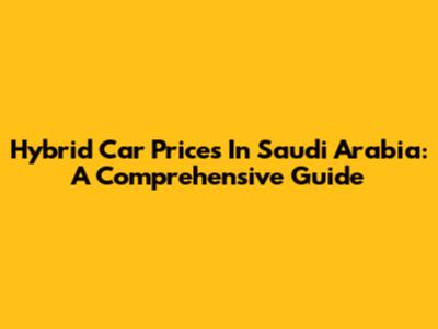 Hybrid Car Prices In Saudi Arabia: A Comprehensive Guide