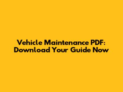 Vehicle Maintenance PDF: Download Your Guide Now
