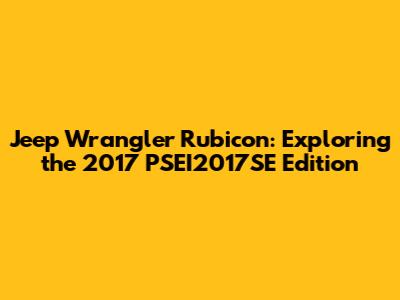 Hey guys! Today, we’re diving deep into a seriously cool ride: the 2017 PSEI2017SE Jeep Wrangler Rubicon. This isn't just your average Wrangler; it's a special edition that brings a unique blend of rugged capability and distinctive styling. If you're a Jeep enthusiast or just someone who appreciates a well-crafted off-road machine, you're in for a treat. We'll explore everything that makes this particular model stand out, from its performance specs to its exclusive features. So, buckle up and let’s get started!