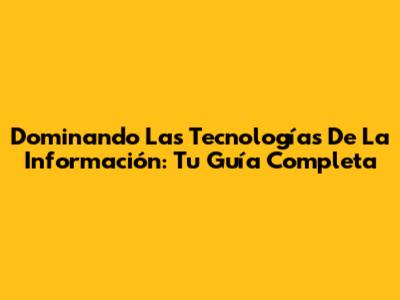 Dominando Las Tecnologías De La Información: Tu Guía Completa