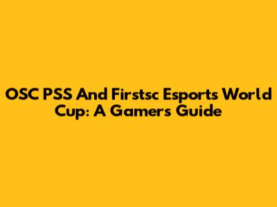 OSC PSS And Firstsc Esports World Cup: A Gamer's Guide