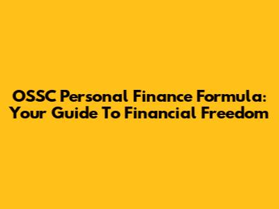 OSSC Personal Finance Formula: Your Guide To Financial Freedom