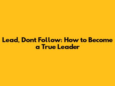 Why Should You Be a Leader, Not a Follower?