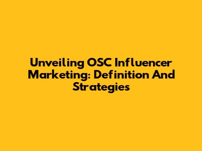 Unveiling OSC Influencer Marketing: Definition And Strategies
