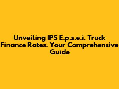 Unveiling IPS E.p.s.e.i. Truck Finance Rates: Your Comprehensive Guide