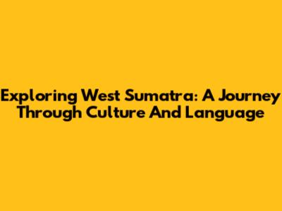 Exploring West Sumatra: A Journey Through Culture And Language